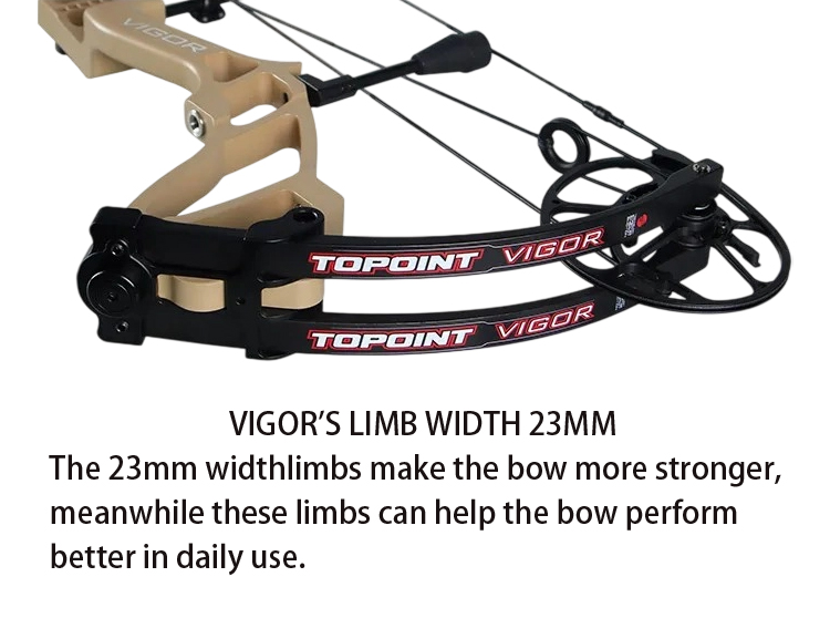 The 23mm widthlimbs make the bow stronger, meanwhile these limbs can help the bow perform better in daily use.