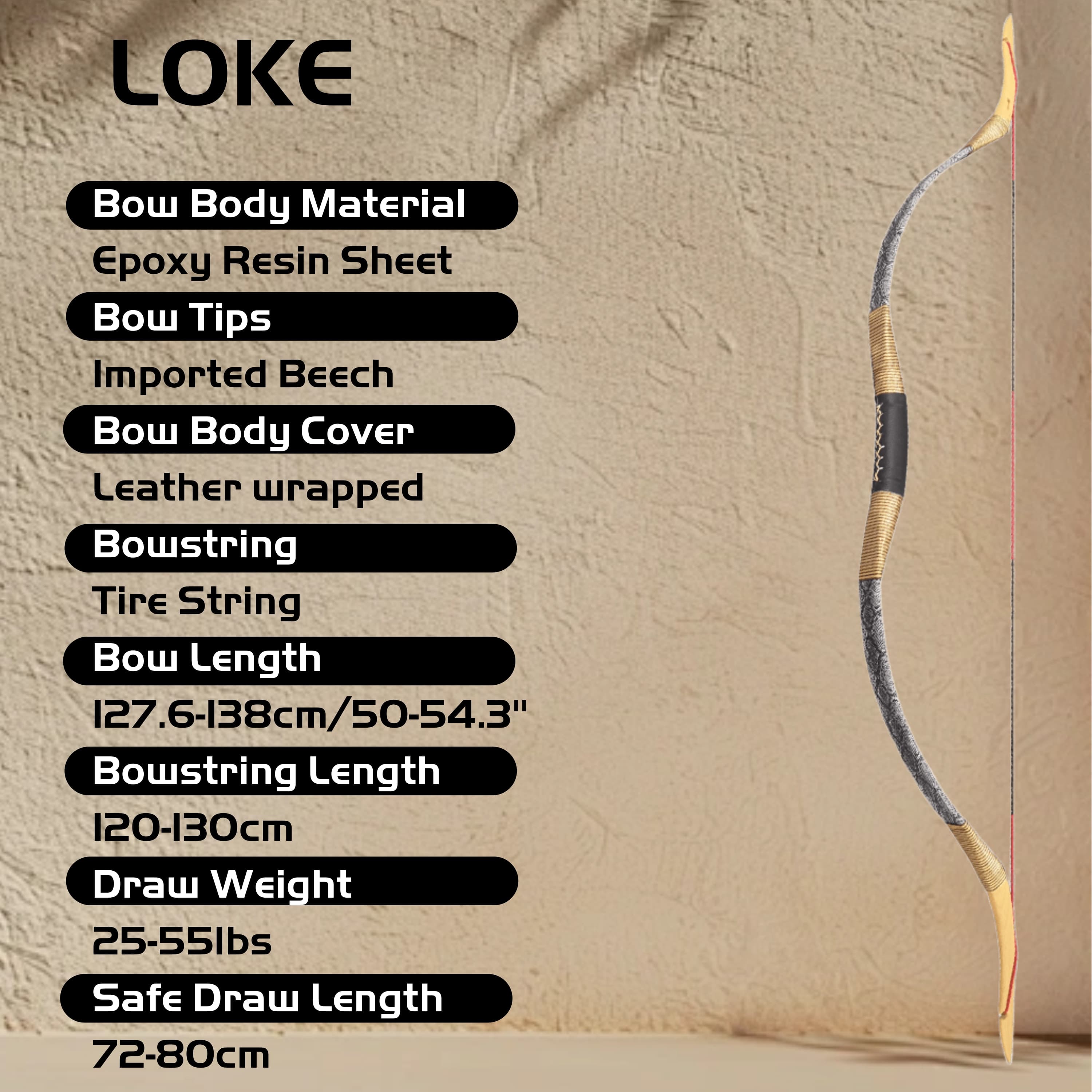 A beautifully crafted traditional bow featuring a leather-wrapped body, high-performance epoxy resin limbs, and imported beechwood tips. Weighing only 532g, this lightweight and responsive bow delivers an authentic shooting experience, perfect for instinctive target practice and traditional archery.