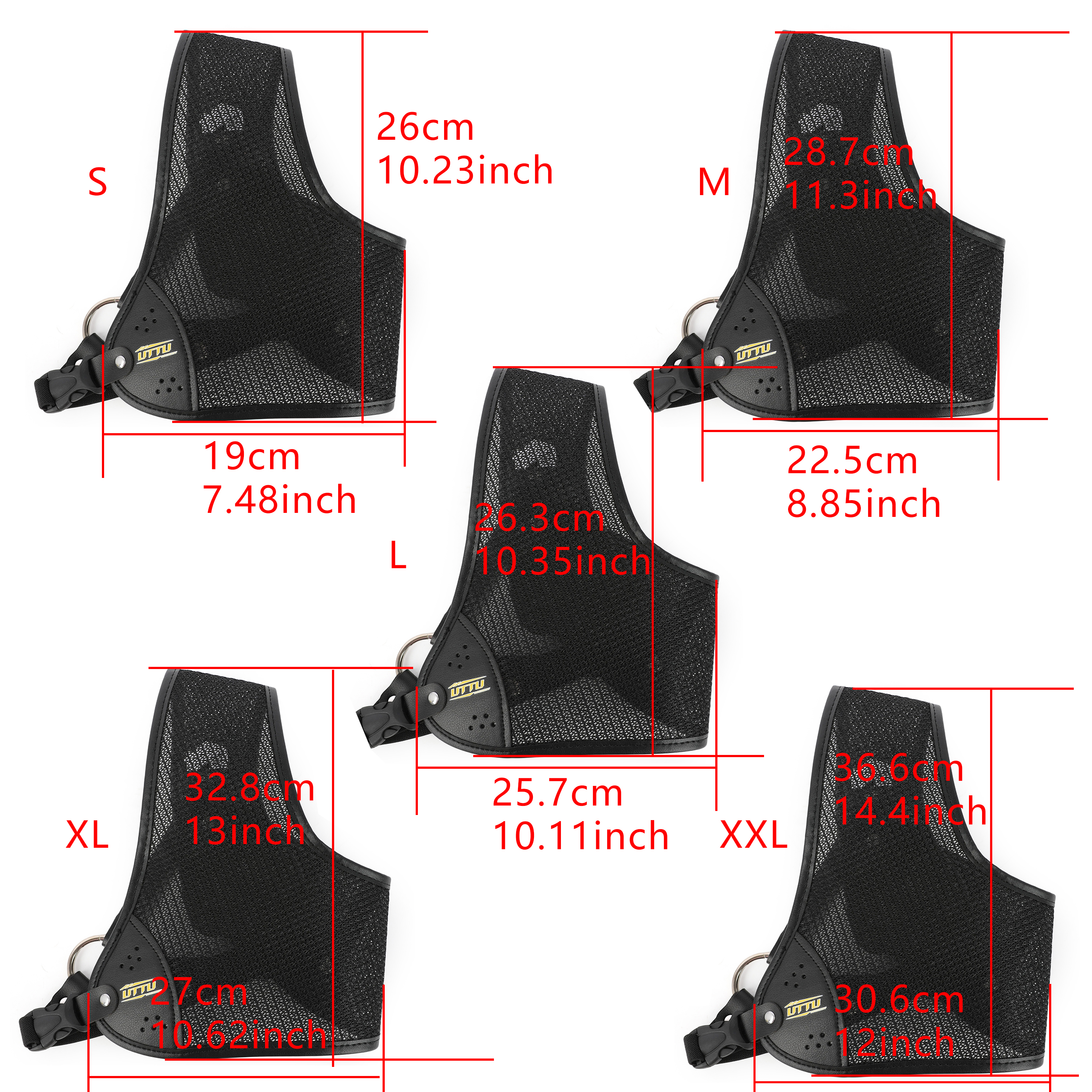 Multiple Size Options: Available in five sizes (S, M, L, XL, XXL) to ensure a perfect fit for various body types, with dimensions ranging from 19x26 cm to 30.6x36.6 cm.