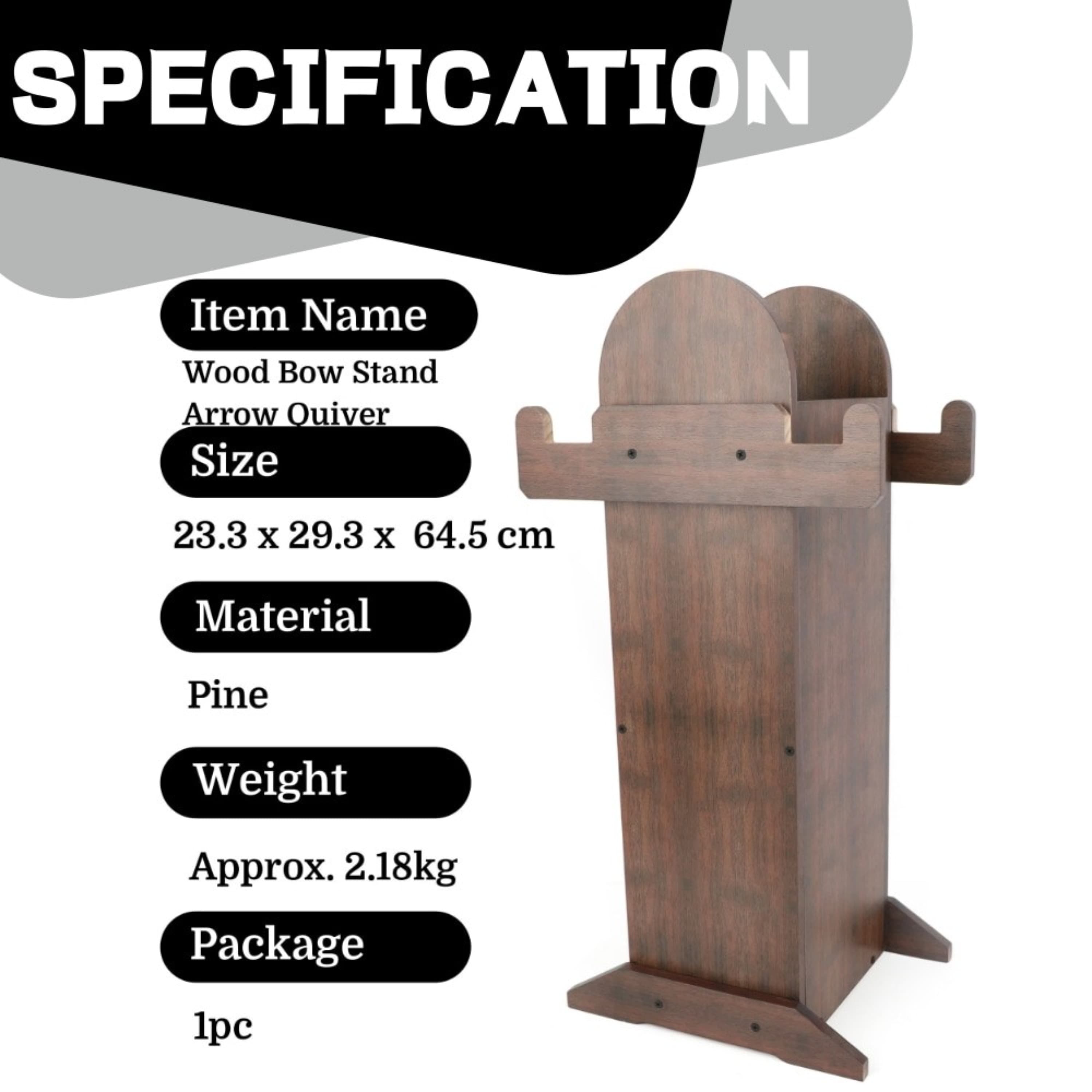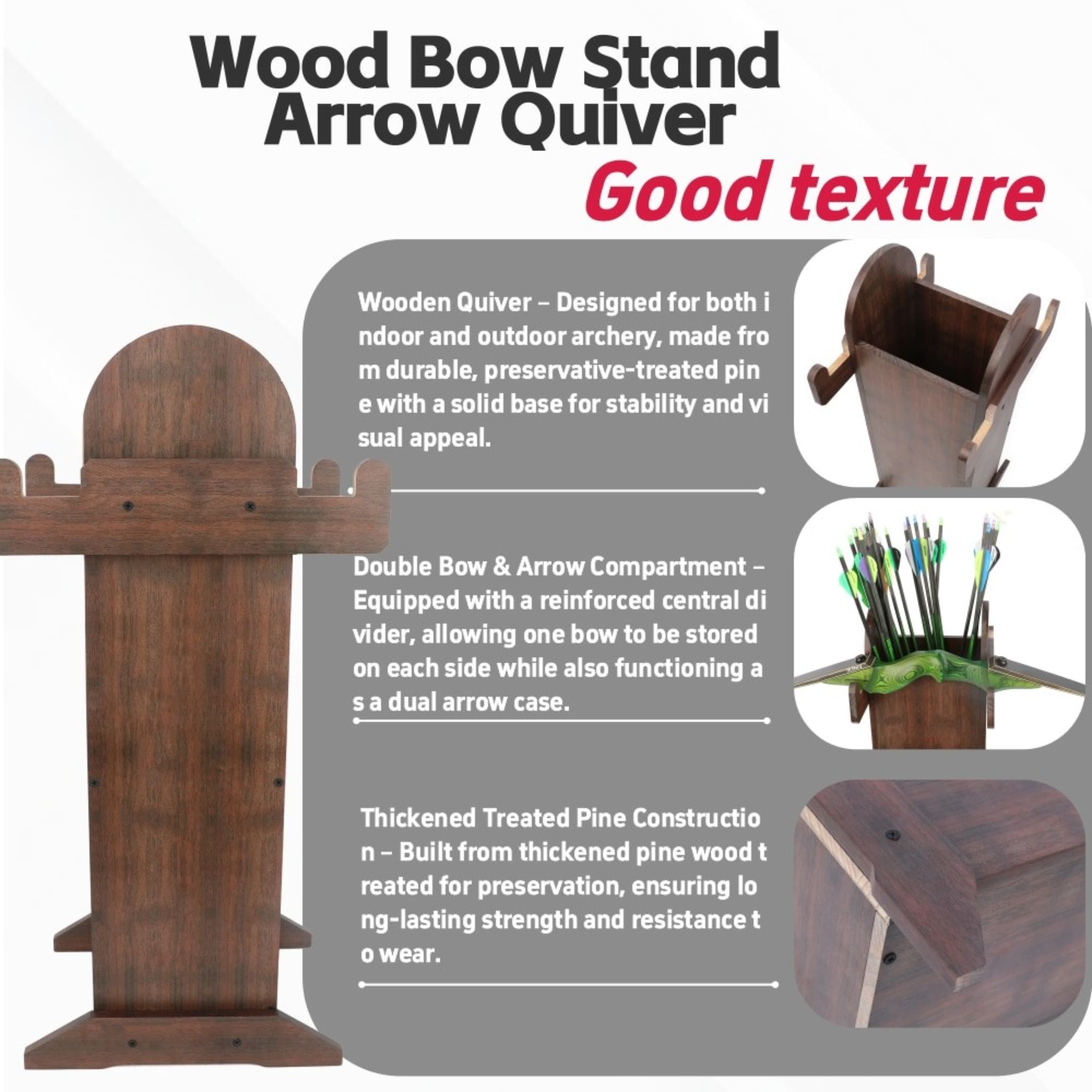 A handcrafted, dual-purpose archery organizer that combines classic aesthetics with practical utility. This solid pine stand serves as both a stable bow rack for two bows and a spacious arrow quiver, crafted from treated wood for durable, elegant gear storage at home or on the range.